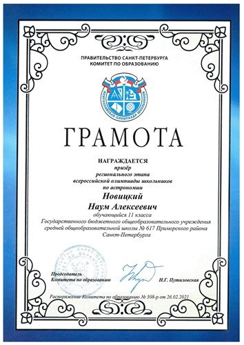 | 13 | астрономия | Новицкий Наум | 11л | Богданова И.В. | призер |
