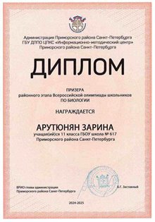 Также Зарина успешно участвовала во Всероссийской олимпиаде, имеет дипломы по Химии, ОБЖ, Биологии, Экологии, Технологии.