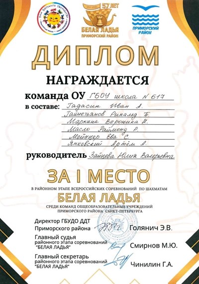 С огромной гордостью и радостью сообщаем, что команда ГБОУ школы № 617 Приморского района заняла на этих соревнованиях ПЕРВОЕ МЕСТО!