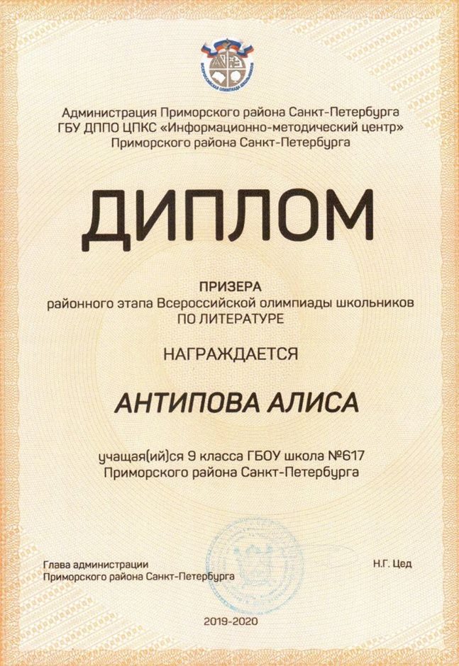 Дипломы Всероссийской олимпиады