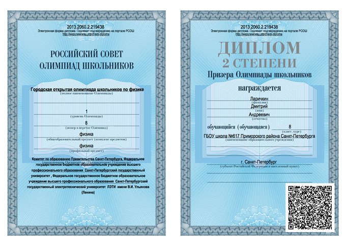 Дипломы городской открытой олимпиады школьников по физике