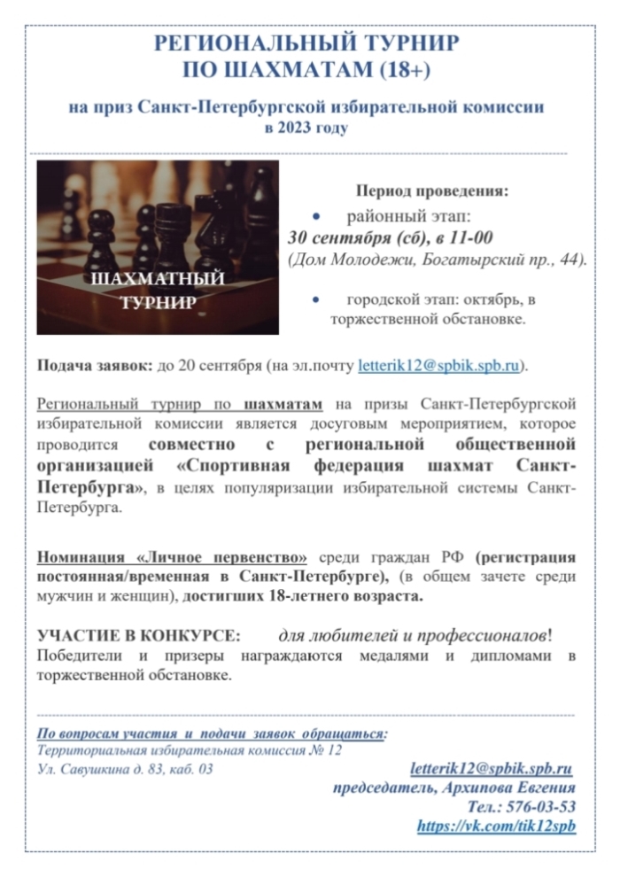 Региональный шахматный турнир по шахматам 18+