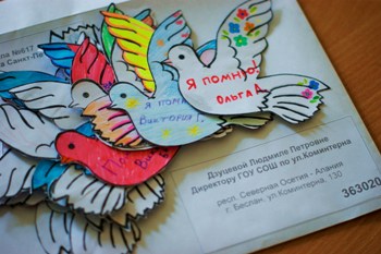 Ученики 5 «Б» класса, в память о жертвах Беслана своими руками сделали бумажных голубей, на которых написали добрые слова. Этих голубей мы решили отправить в Беслан, чтобы жители города знали, что в эти дни мы скорбим вместе с ними, что мы помним…