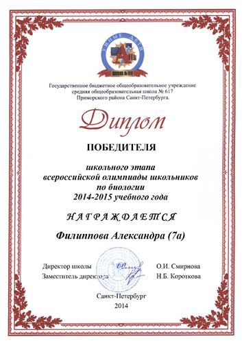 Победители школьной олимпиады по биологии 2014-2015